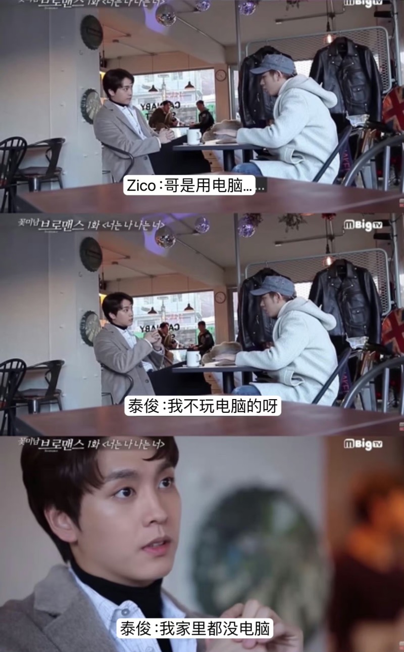 崔泰俊:「只有你有嗎?我也有!」(展示了一些Zico以前的黑歷史自拍)