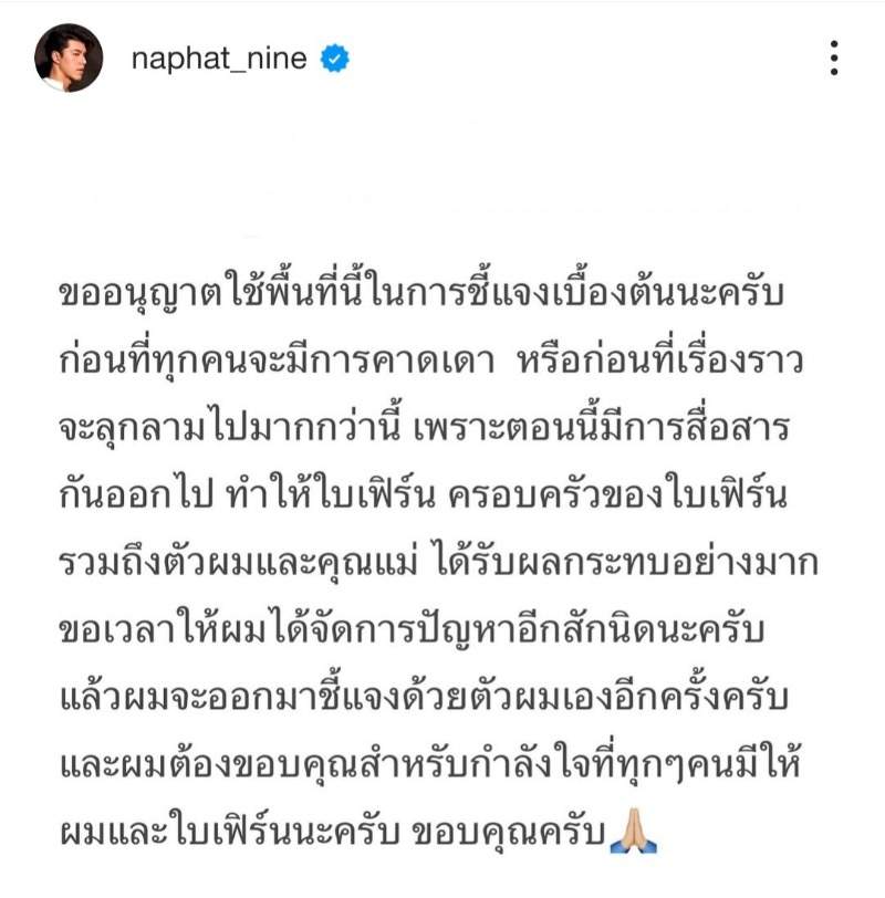 啊咧,真的分手了!是達,泰國藝人小九(Nine Naphat)四號召開記者會,正式官宣和Baifern小水平采娜分手。