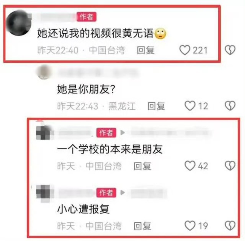 原Po也在評論區裡面回復其他網友的留言,表示兩人同校,本來是朋友,小葉子還曾說原Po的視頻很黃,讓自己很無語。