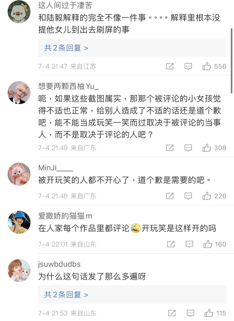 隨後陸毅發了長文,解釋了事情的經過後,表示女兒小葉子在和朋友拍攝短視頻時,因為對方特效掉了,所以小葉子才會說出對方鼻子搞笑的言論。沒想到本來屬于朋友之間的玩笑,卻被有心人利用了。對此,陸毅直呼作為家長不希望看到女兒被攻擊。另外他還呼籲保護未成年人,杜絕跟風傷害!