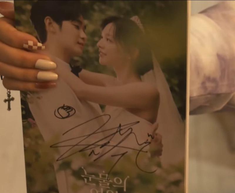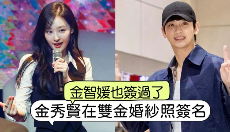 結果事後網友才發現,金秀賢唯一簽下的親筆照,居然是簽在了他和金智媛在《淚之女王》中的婚紗照上!放大來看,清清楚楚明明白白,就是雙金婚紗照!