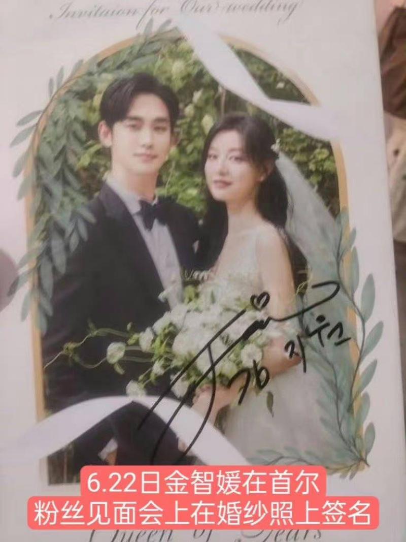 上了熱搜之後,網友才發現…金智媛早在剛過去的首爾見面會上,也簽了雙金婚紗照啊!!!!
