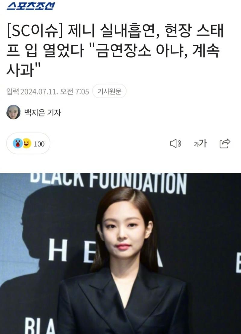 室內抽煙被惡評了好幾天!工作人員力挺JENNIE!發聲還原現場事發情況「我很傷心」!