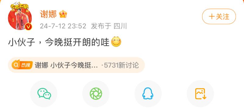 沒想到不僅歌迷嘩然,身為另一半的謝娜也來“湊熱鬧”,發文表示:「小夥子,今晚聽開朗的哇」