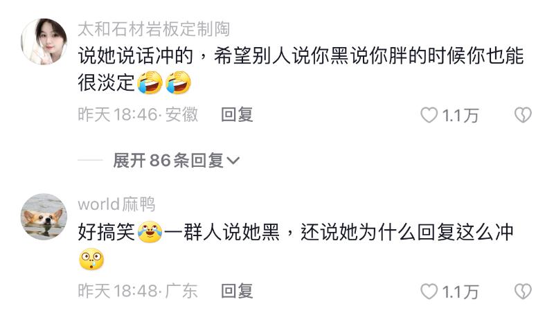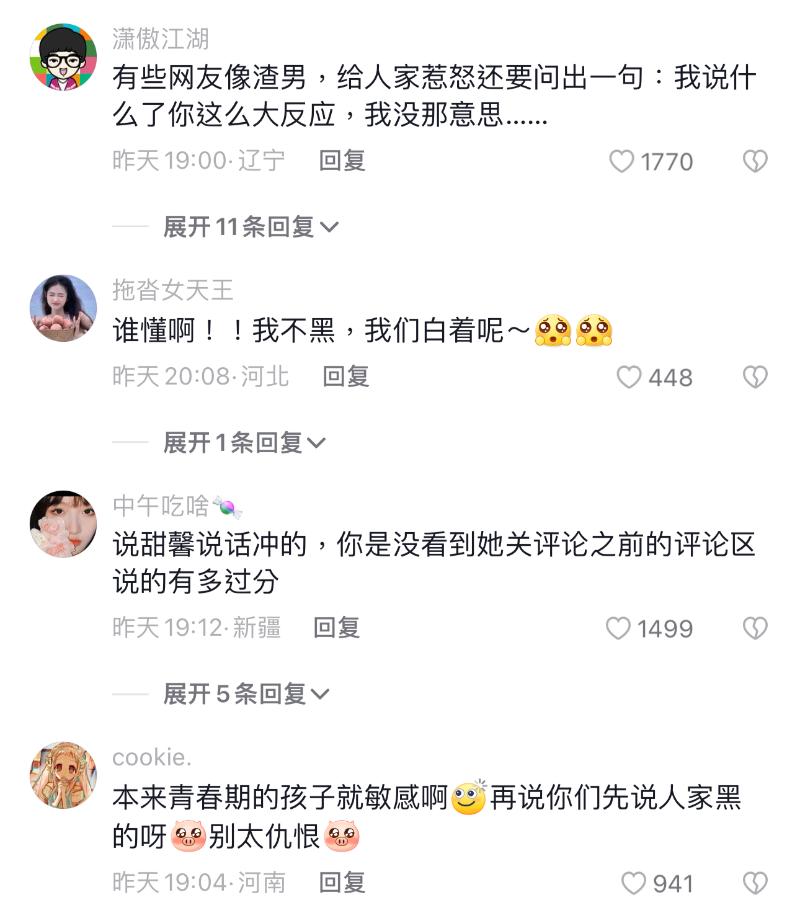 沒想到也正因這些偶遇照,被某些「住海邊」的網友嘲諷,認為甜馨怎麼又變黑了!而我們的甜馨也沒在慫,直接發文三個字回嗆:「那咋了。」(那又怎麼樣的意思)甜馨配文表示:「黑了就給了唄!那咋了!要白的像死人嗎?」可以說回懟得十分爽快!