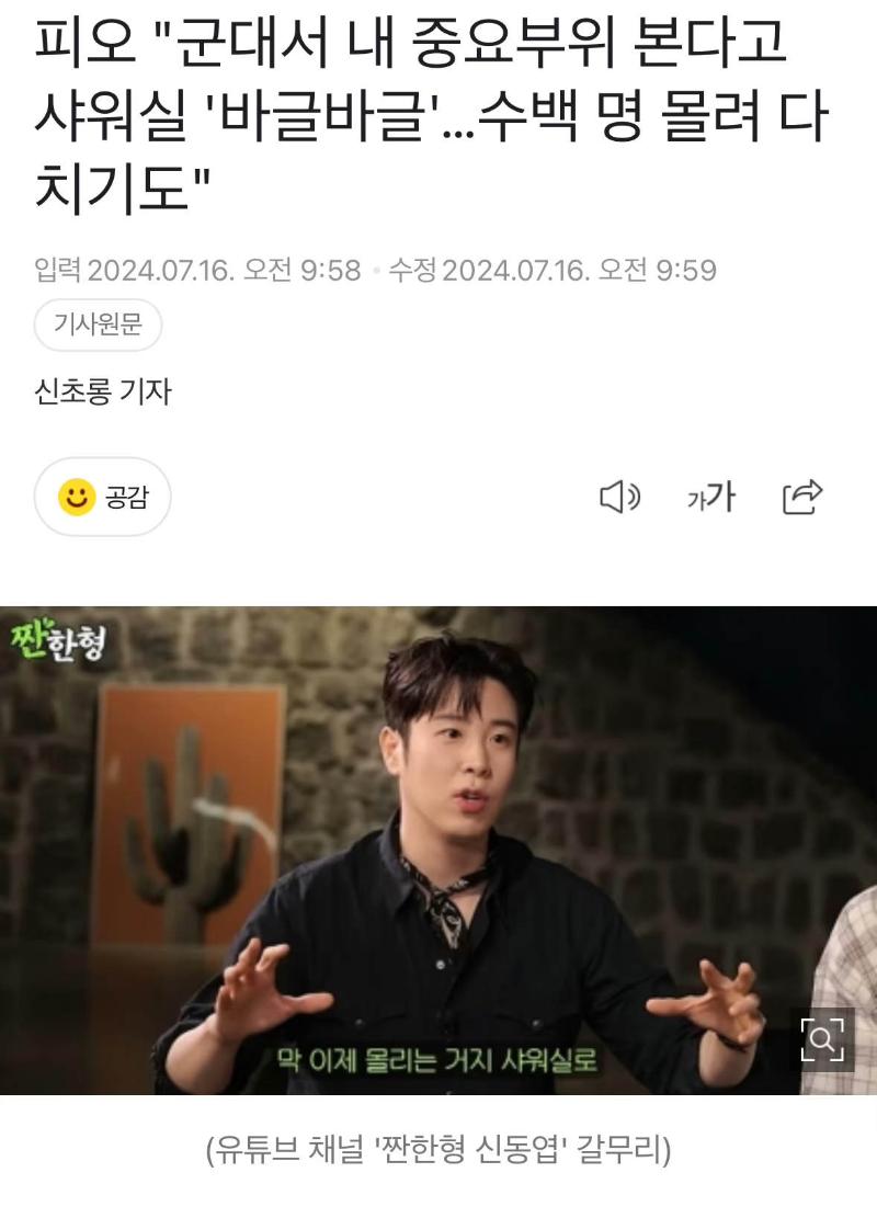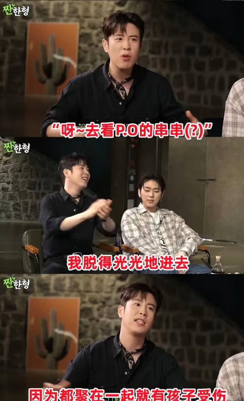 節目中,P.O提及了自己入伍期間的插曲,訓練完了之後所有人第一時間趕到了澡堂,自己就聽見數百人中有人說:「‘去看P.O重要部位吧’、‘去看P.O的香蕉吧’,我聽到了他們就是這麽說的。」