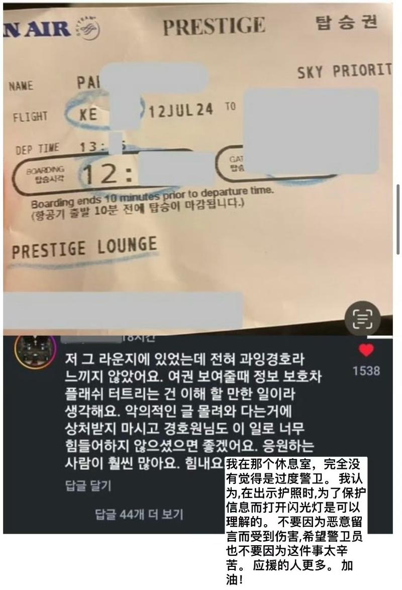 同樣出示了機票自證的網友也表示,不認為是過度警衛,認為為了保護護照信息,而打開閃光燈是可以理解的。