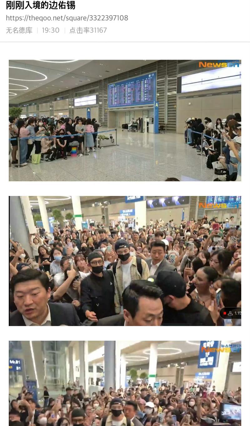 而邊佑錫在16號結束海外FM行程回國時,在機場也低調前進,但機場內的接機人潮也讓人見識到保安的必要性~