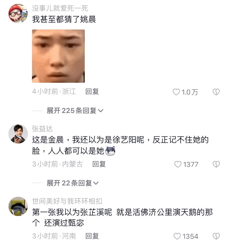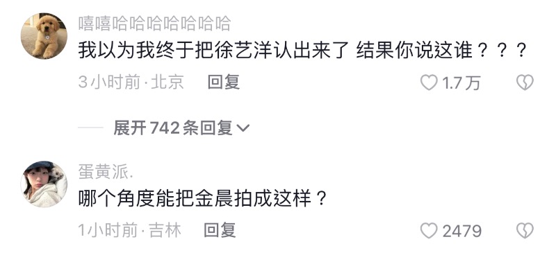 金晨又來變變臉?最新自拍全網認不出!熱門答案:徐藝洋? 星聞 By 歐巴是我的 On Jul 18, 2024 Share 就是說,金晨真的又考倒一堆網友啦!是達,有網友發帖讓網友猜人,結果居然僅3%網友猜對👇 就是這張圖,很多網友看了老半天依然猜不出是誰👇 答案揭曉,就是我們本文的主角金晨!日前更新日常帖,沒想到這張自拍直接空降熱搜第一「#差點認不出金晨」 來看網友熱評,最多在猜的是剛和黃子韜官宣的徐藝洋,也有的猜娜扎、楊超越,猜來猜去就是沒有金晨👇 雖然但是,來看另一個角度,其實還是認得出是金晨,只能說拍照角度很重要啊! 圖來源:部分照片取自網路,若侵權請告知 Share