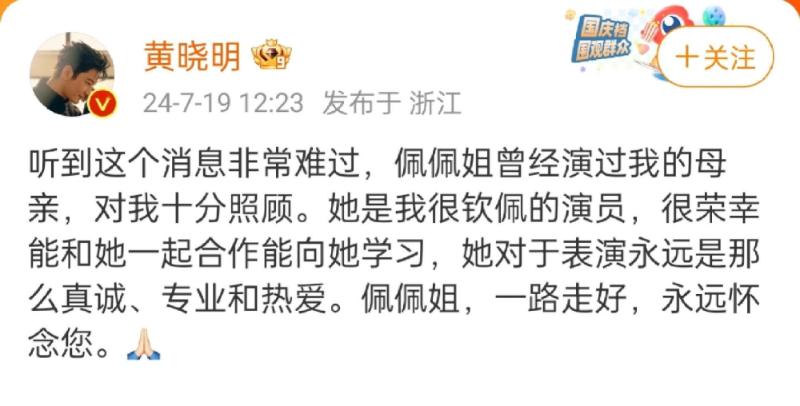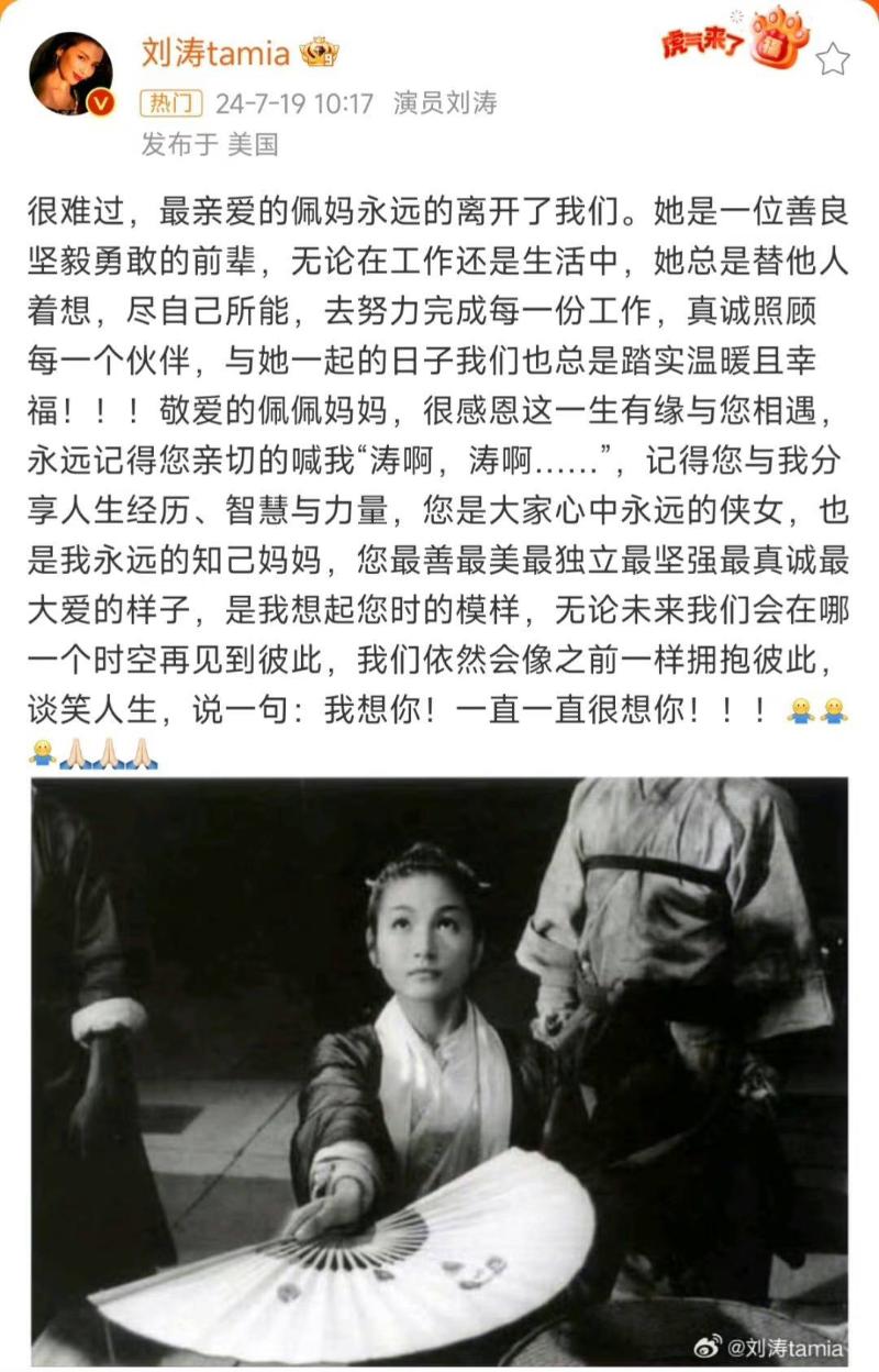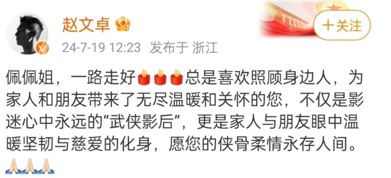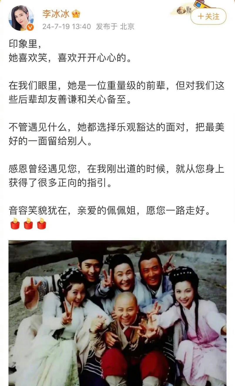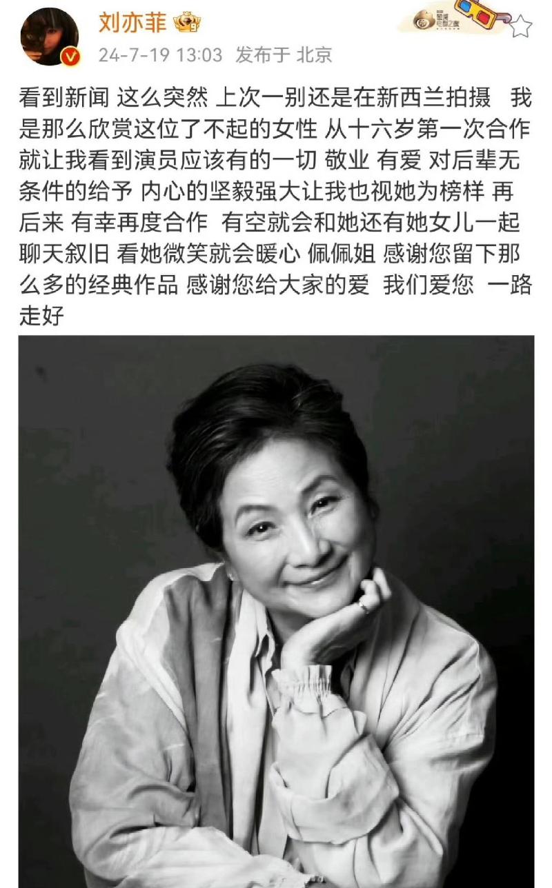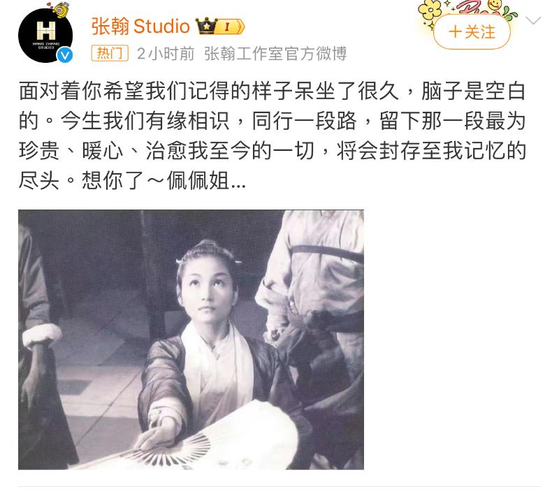 鄭佩佩一生人緣極好,消息傳出之後,不少圈內藝人紛紛發文悼念,當中包括了周星馳👇