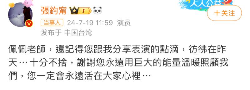 最後,以鄭佩佩老師說過的金句來結尾:「當下,永遠是你的黃金時代,為什麼?因為你過了今天,你就回不來了,所以要珍惜每一個當下。」也以老師說過的「豈能盡如人意,但求無愧我心」送給每個人,老師,一路走好。