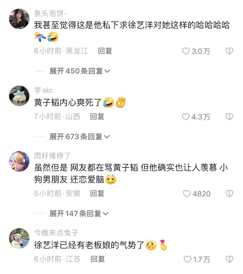 沒想到在其他嘉賓面前公開之後的兩人,真的是肆無忌憚在狂秀恩愛啊!來看看,節目中AK叫徐藝洋「徐徐」,結果就被黃子韜直面投訴,不允許Ak叫徐藝洋「徐徐」,直言「很惡心」👇