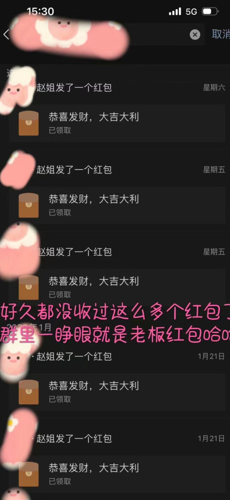化妝師曬出的截圖,可以看見群中一直都有人在發微信紅包,包括了趙露思~