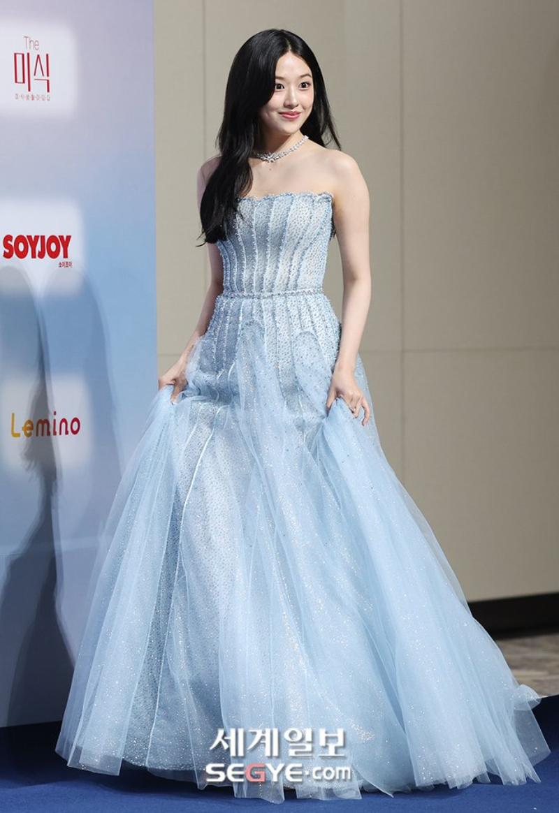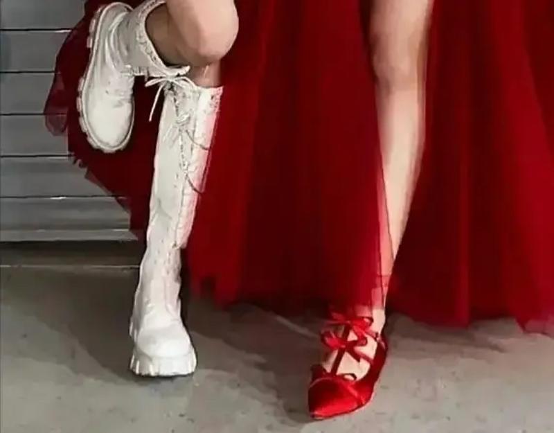而張員瑛被指在拍照時,故意單腳站立拍照,結果直接踩在了安俞真的高定禮裙上!而且踩了不止一次👇
