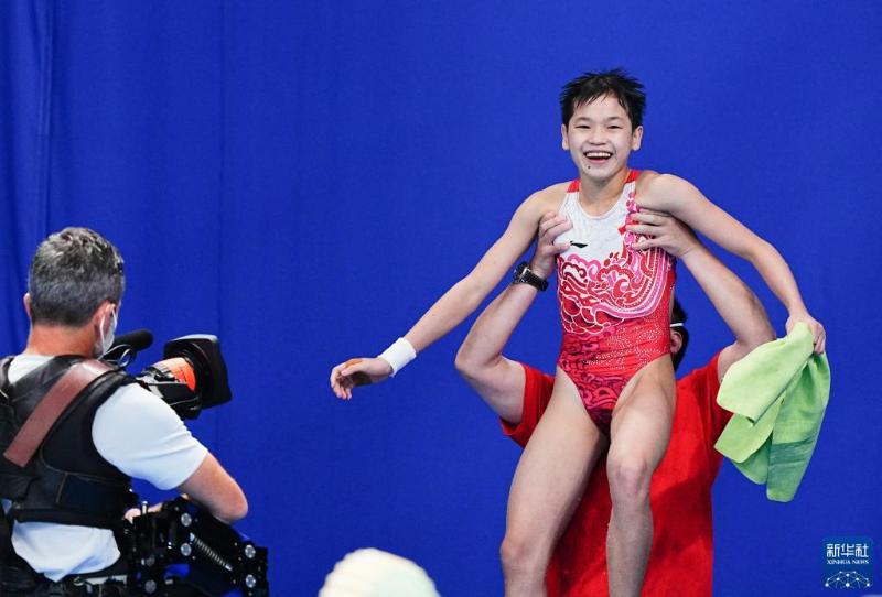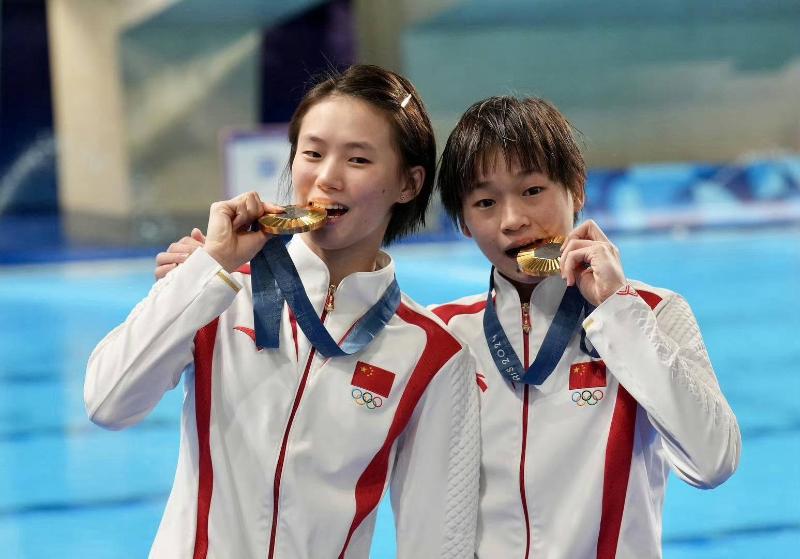 而這一屆的奧運,她也搶先和搭檔陳芋汐,在女子雙人10米跳台以絕對優勢奪下金牌!