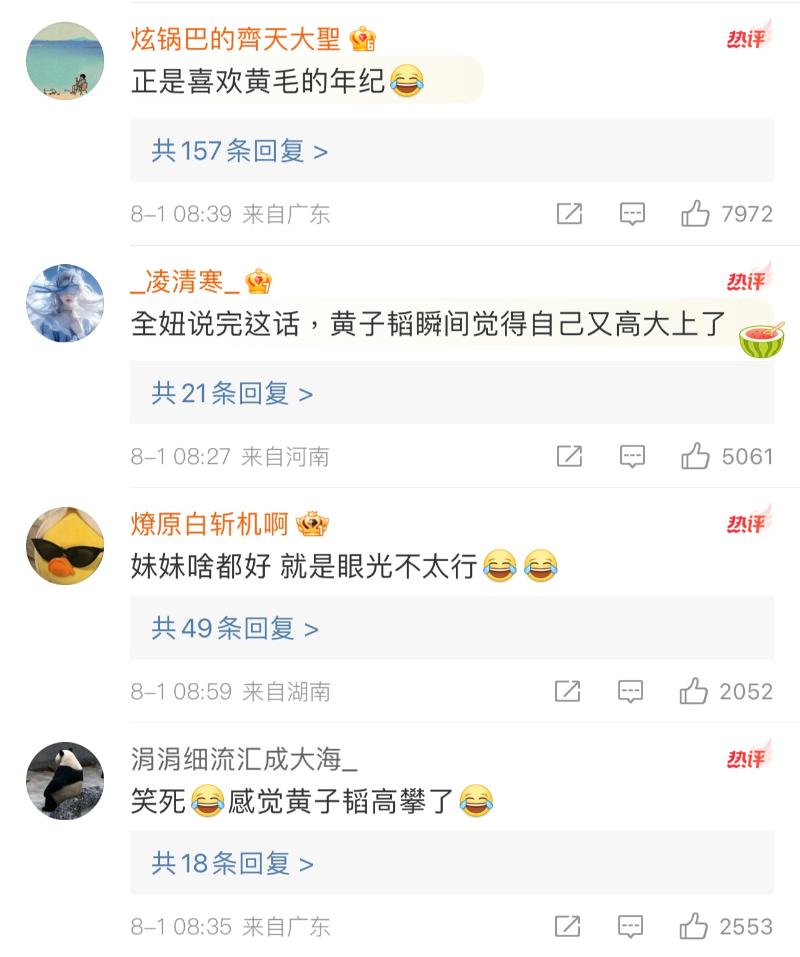 但不得不說的是,黃子韜除了官宣戀情方面成嘲點,其他地方還真的沒啥負評!尤其在熱心做公益這塊,確實很讚啊!重點,全紅嬋說他喜歡黃子韜的搞笑,你看,我們韜總還不搞笑嗎👇