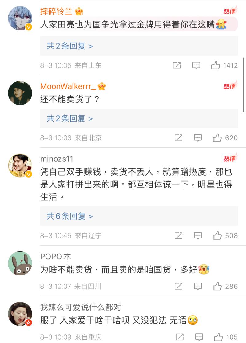 但也有很多網友反對,認為退役運動員不偷不搶帶貨沒問題👇