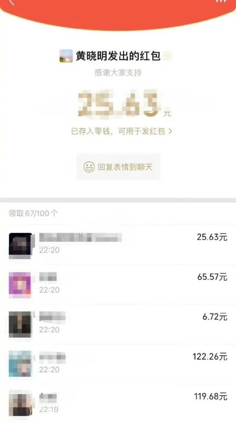 隨後,有媒體還公開了黃曉明在媒體群中發了100個紅包的截圖,看得出曉明哥真的很開心!