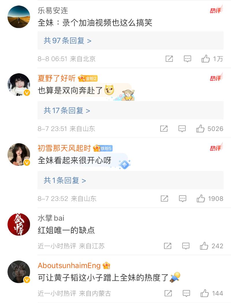 當時就有不少人在線喊話黃子韜,這潑天的富貴快點接住啊!沒想到等了好幾天都沒看見韜總回應,但,原來早就安排好了啦!沒錯,在全紅嬋蟬聯了10米跳水金牌之後,在媒體的安排之下,終於看見了黃子韜的加油視頻👇