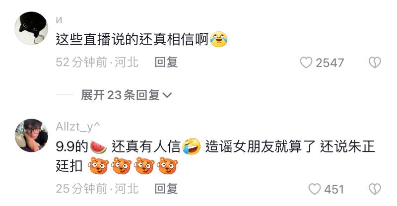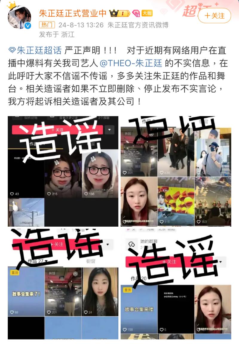 隨後,朱正廷工作室也發聲明,呼籲不信謠不傳謠:「相關造謠者如果不立即刪除、停止發布不實言論,我方將起訴相關造謠者及其公司!」