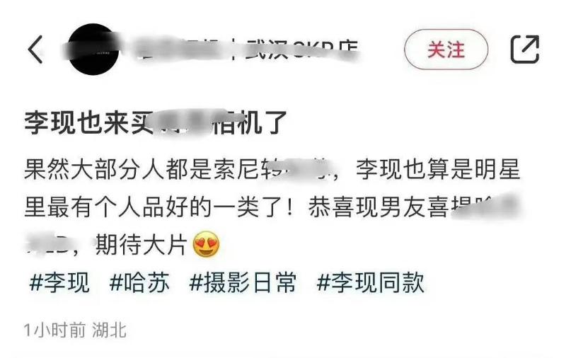 沒想到近日就有相機店家,曬出了李現到店裡試相機的照片,表示就連李現都來買相機了!
