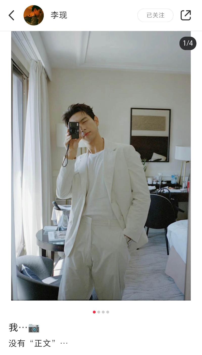 嗚哇~果然是李現作風啊!是噠,都知道李現最近超愛攝影,日常發的微博也幾乎都是自己和相機的合照👇