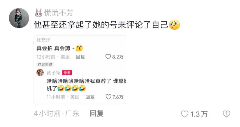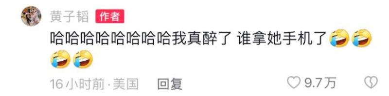 黃子韜不但第一時間點讚了女友的評論,還留言:「哈哈哈哈哈哈哈哈我真醉了,誰拿她手機了」哈哈哈哈哈,隔著熒幕都可以想象他的表情,主打一個”不敢相信“啊!