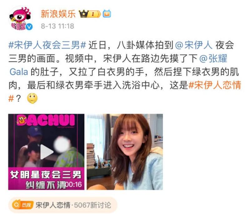 照片公開之後,就有媒體以「宋伊人夜會三男」來報導👇