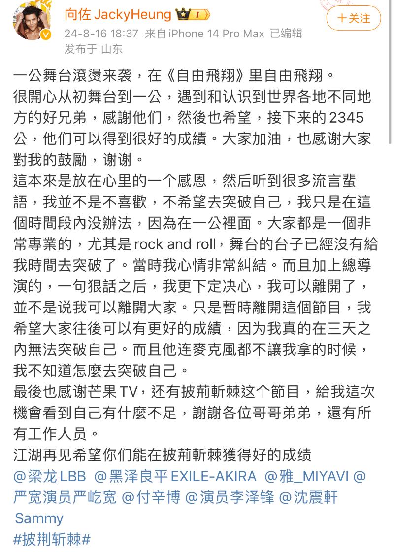 更經典的是,節目都還沒有播出,向佐就先發文“告別”《披荊斬棘》🤣