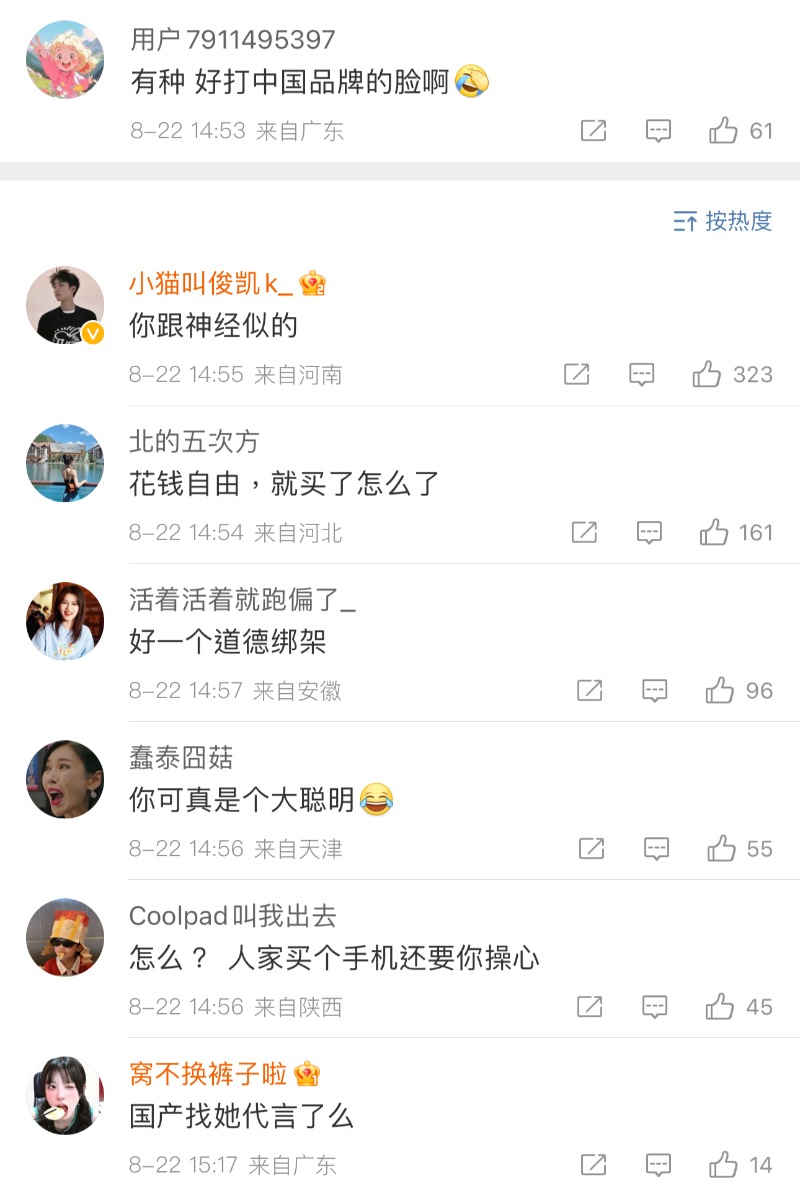 還有覺得打臉中國品牌,但也有網友幫忙回懟👇