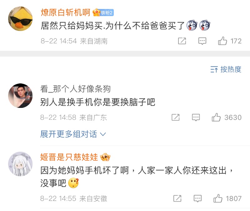 甚至還有質問為什麼買給媽媽不買給爸爸的⋯同樣被其他網友回懟👇