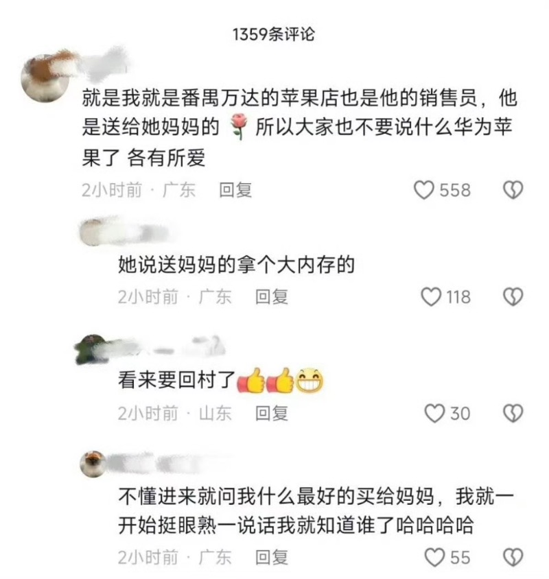 起因是有蘋果門店的銷售員發帖,分享了全紅嬋到自家門店買iPhone給媽媽👇