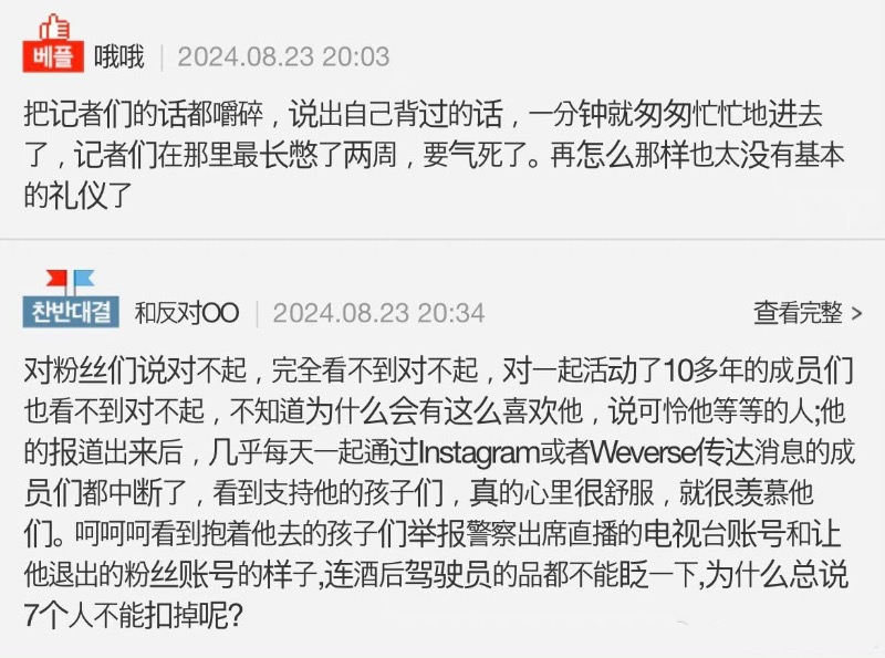對於SUGA完全沒回應,韓網評論👇