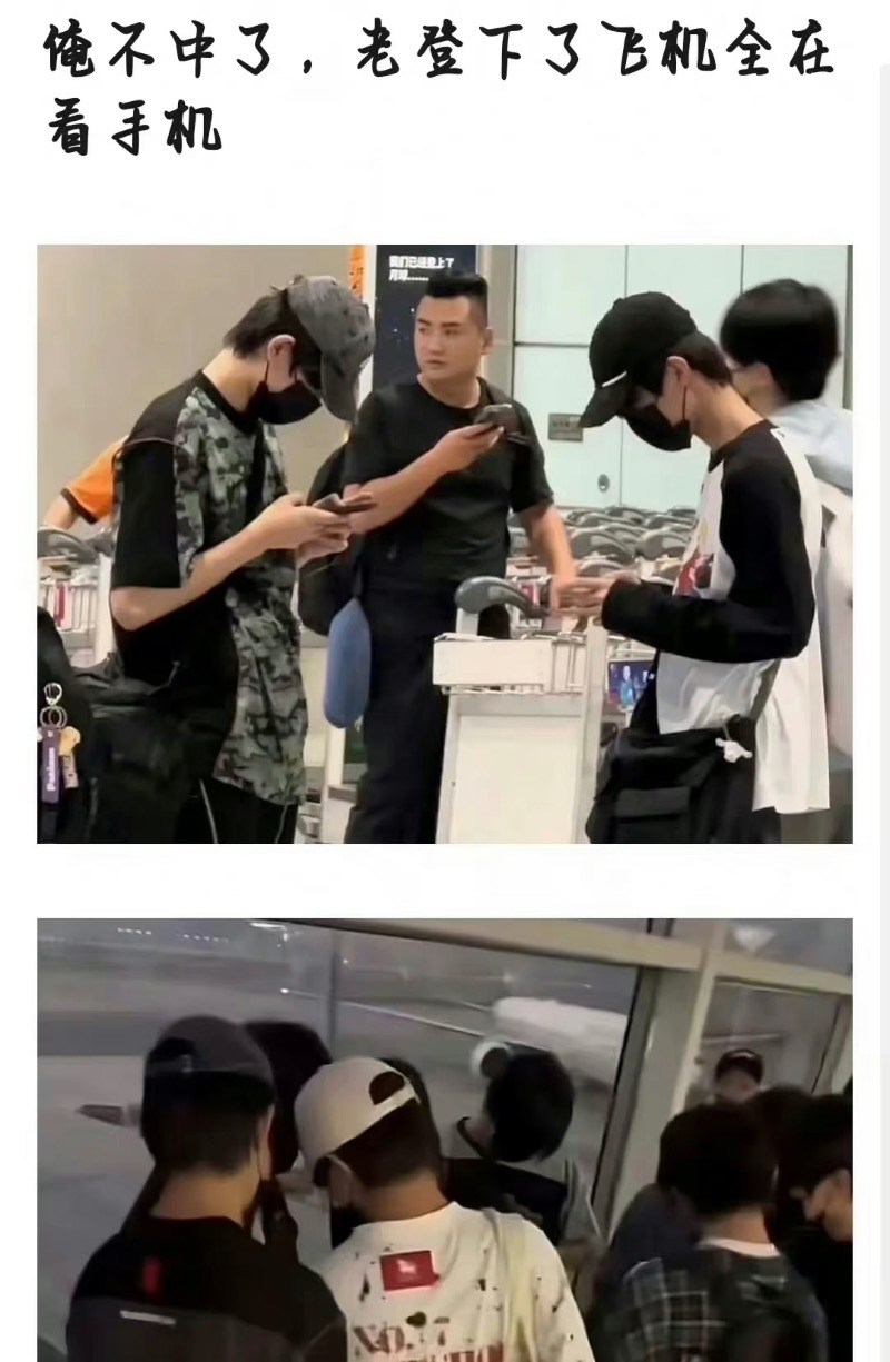 而剛從馬來西亞回國的登陸少年,在機場被拍到全員忙著看手機👇