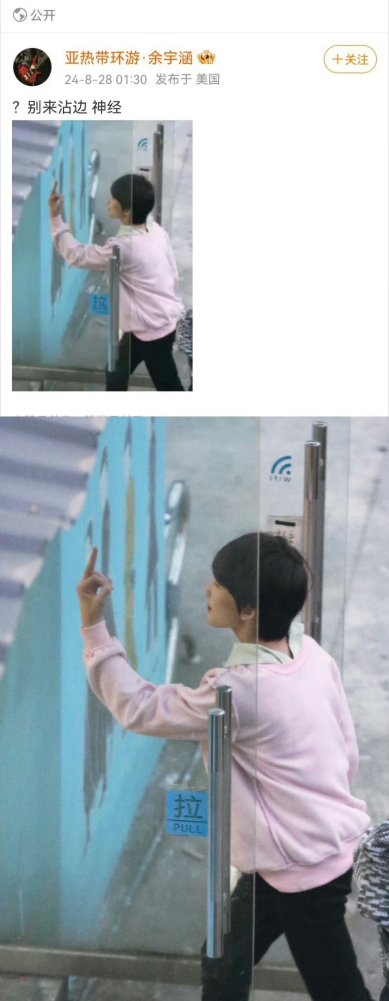 余宇涵大粉也發文脫粉,並曬出了余宇涵比中指的照片👇