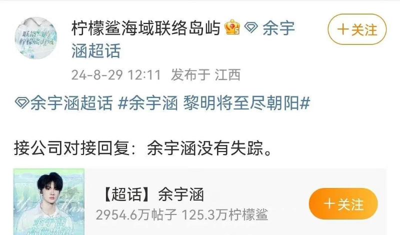 就,公司對接隨後闢謠,表示余宇涵並沒有失蹤👇