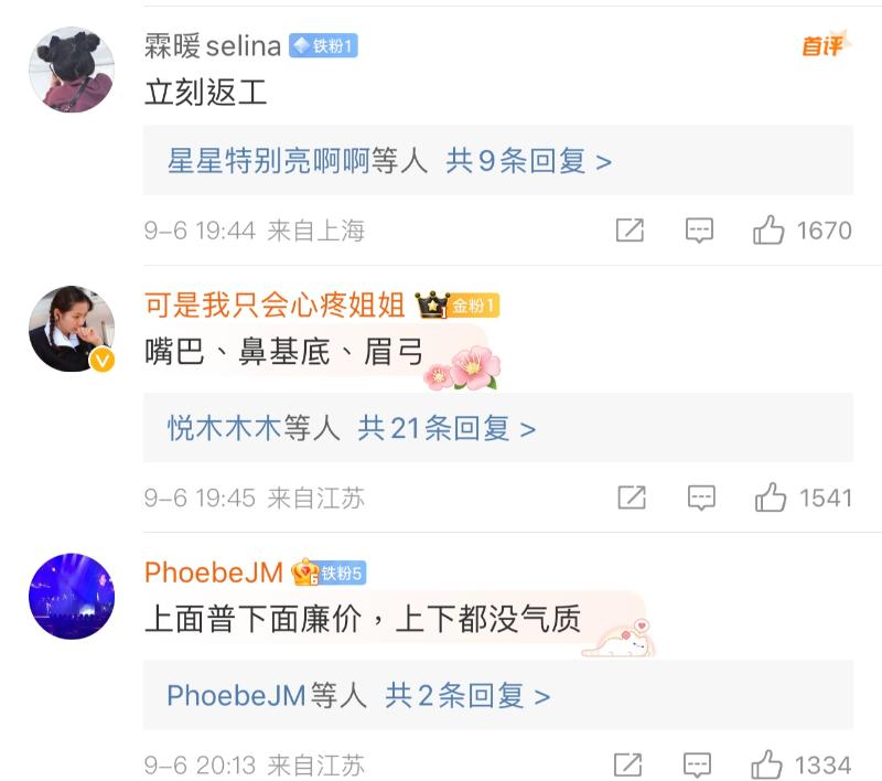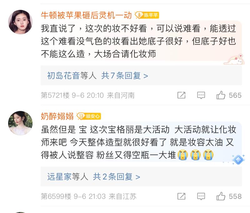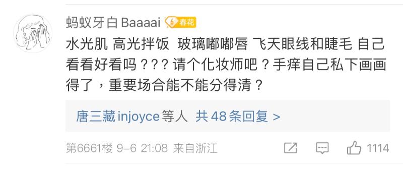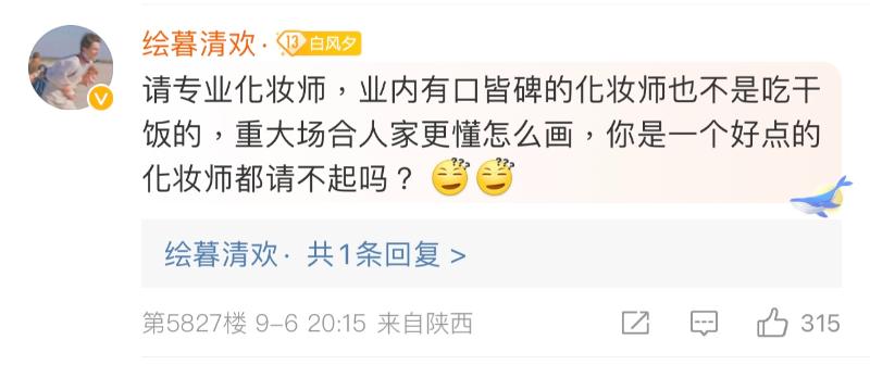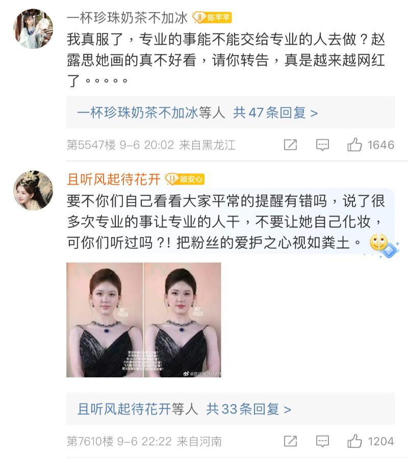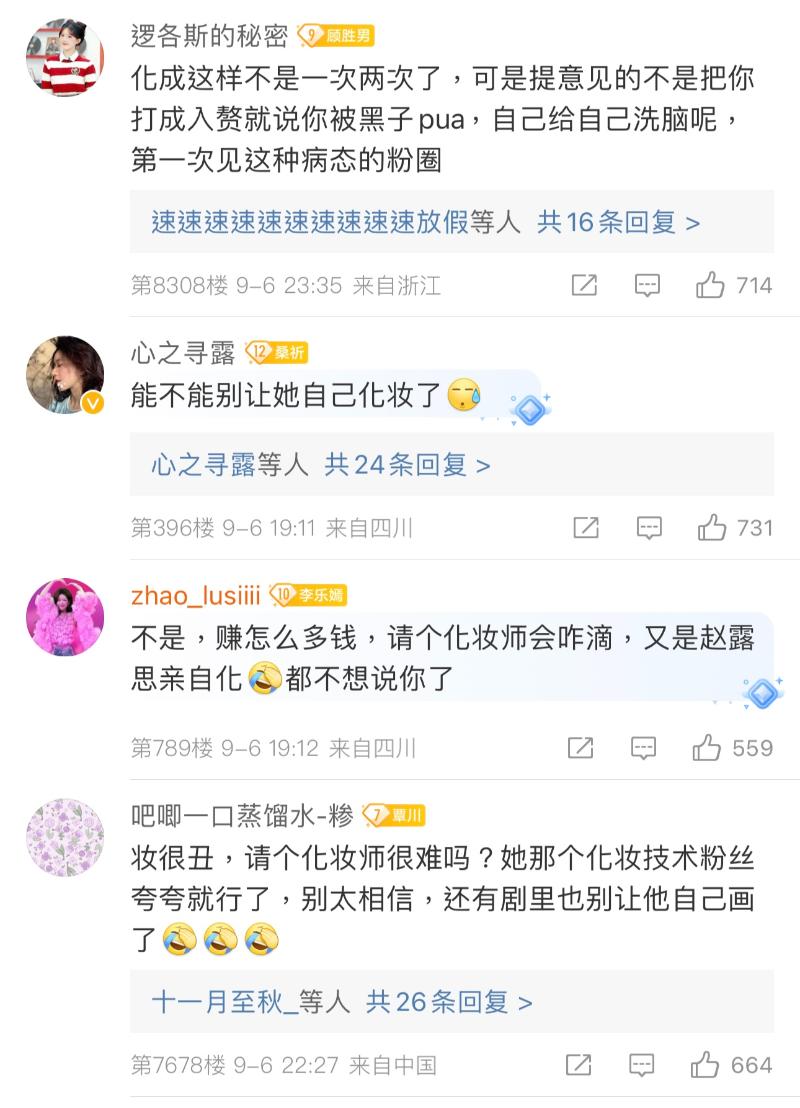 工作室評論區,不少粉絲也下場開噴,讓趙露思別再自己化妝了,大場合的妝交給專業人士負責👇
