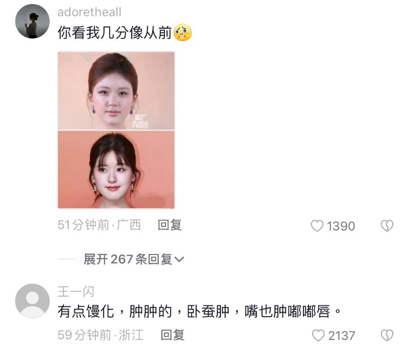 就是說,如果有在留意《許我耀眼》路透的話,大概知道趙露思應該沒整容,只不過一向被人詬病的網紅妝,確實一次又一次讓她陷入爭議啊!