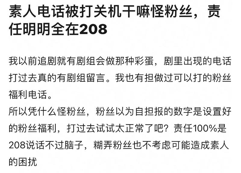 消息曝光之後,網友紛紛在線譴責粉絲不該撥電,但也有網友認為錯的是張杰,因為如果按照電視劇的做法,真的會特別註冊電話號碼,當做彩蛋在劇外相呼應👇