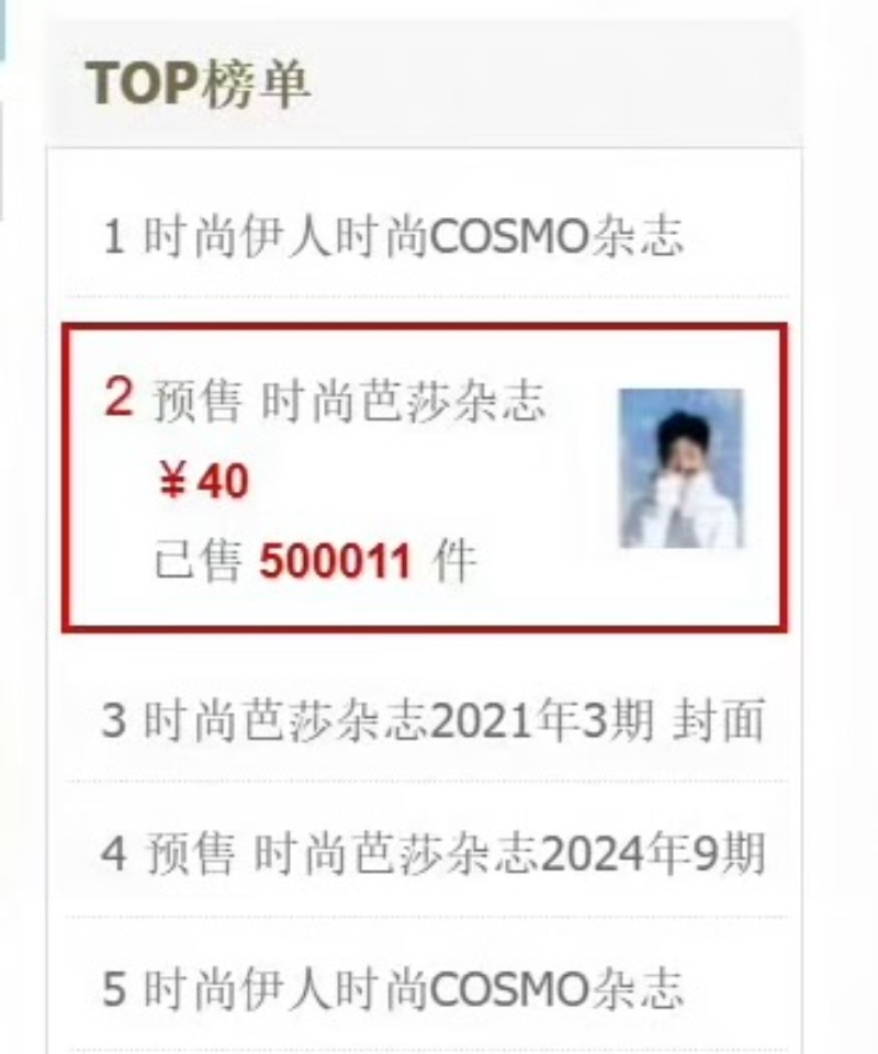 這次銷量更直接破了九月份迪麗熱巴封面的《芭莎》,成為了續王一博之後,內娛排名第二高的銷售成績!