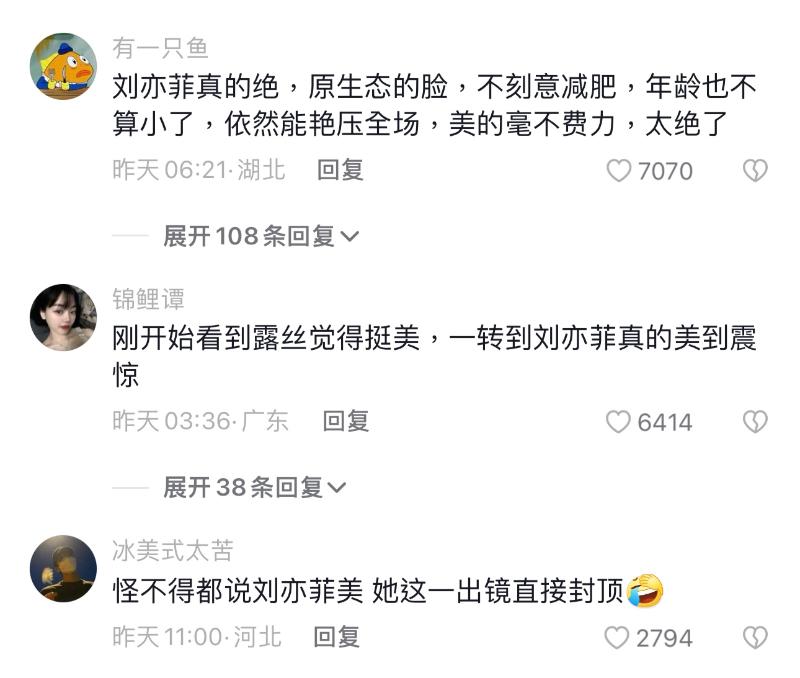 來看熱評,一面倒表示劉亦菲艷壓了!