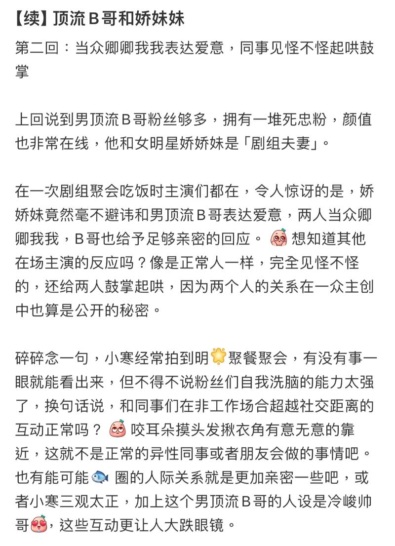 那,到底另一名狗仔爆料內容有什麼呢?提到的是男頂流搞劇組夫妻!這次爆料分上下回,當中提到的重點包括👇