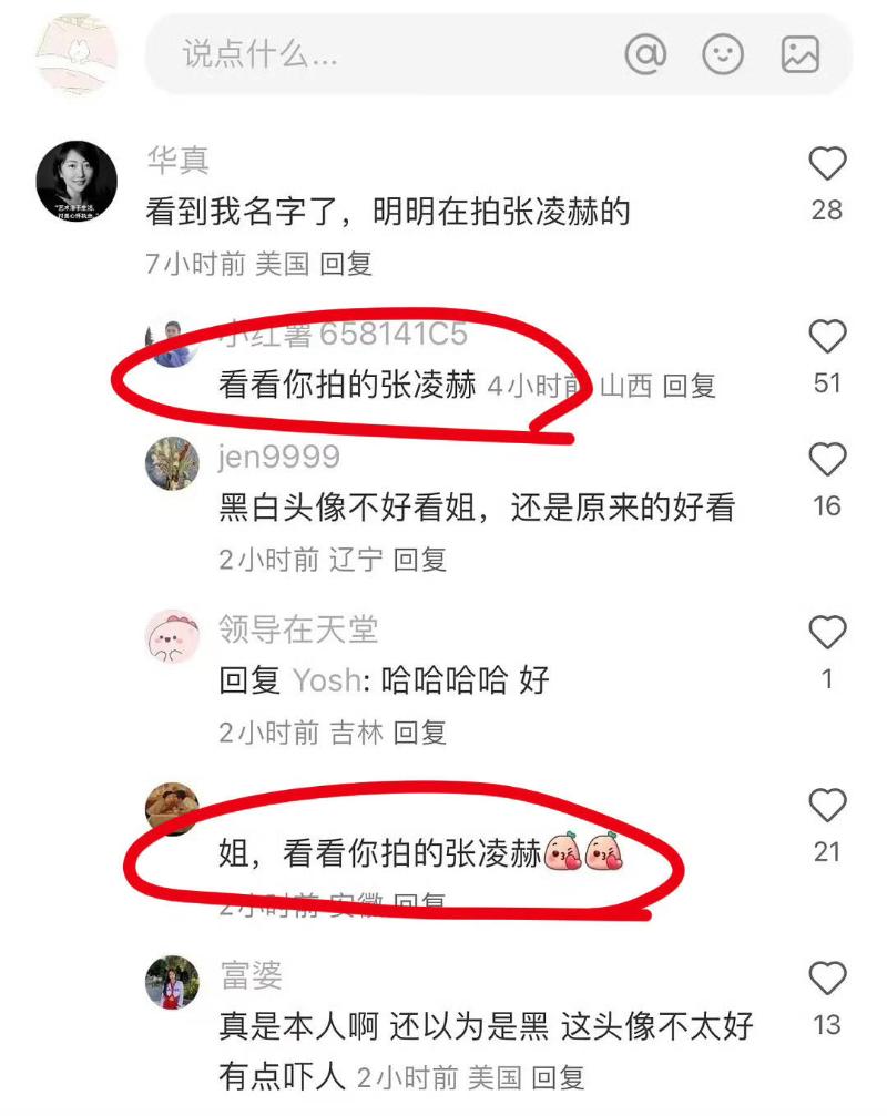 評論區網友要求看她拍的張凌赫,至今沒有回應👇