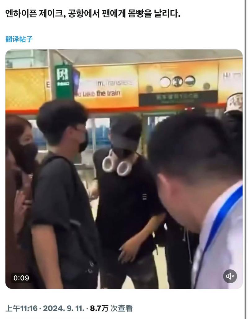 ENHYPEN成員沈載倫上中國熱搜榜了!是噠,10號晚上一張沈載倫疑似在機場推人的動圖被瘋傳,引發爭議!