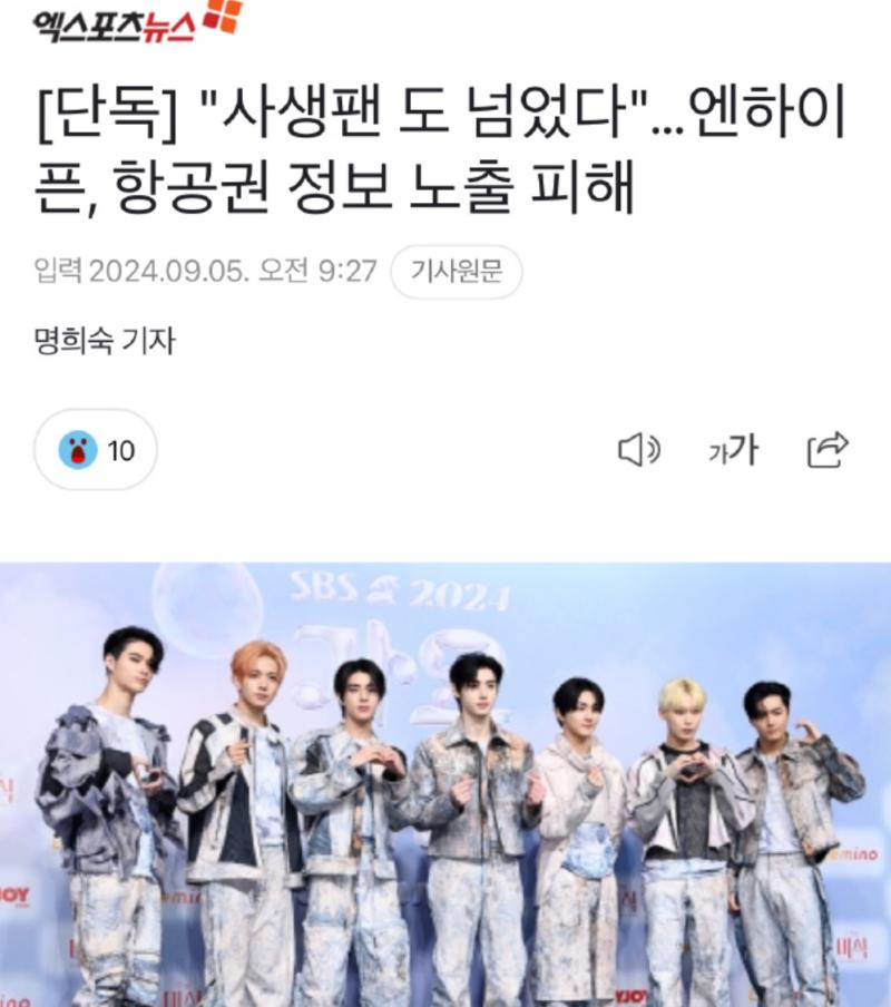 這裡先科普一下,韓團ENHYPEN九月初從中國回韓之後,韓媒曾報道表示回國時,遭私生非法獲取機票信息,阻止他們變更座位,試圖讓成員們坐在指定的位置上。因此,成員們不得不親自在機場確認身份後更改座位。