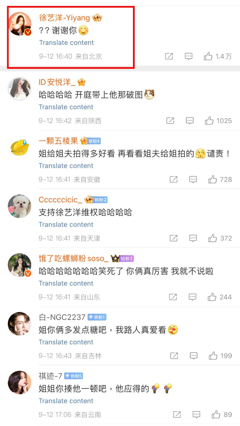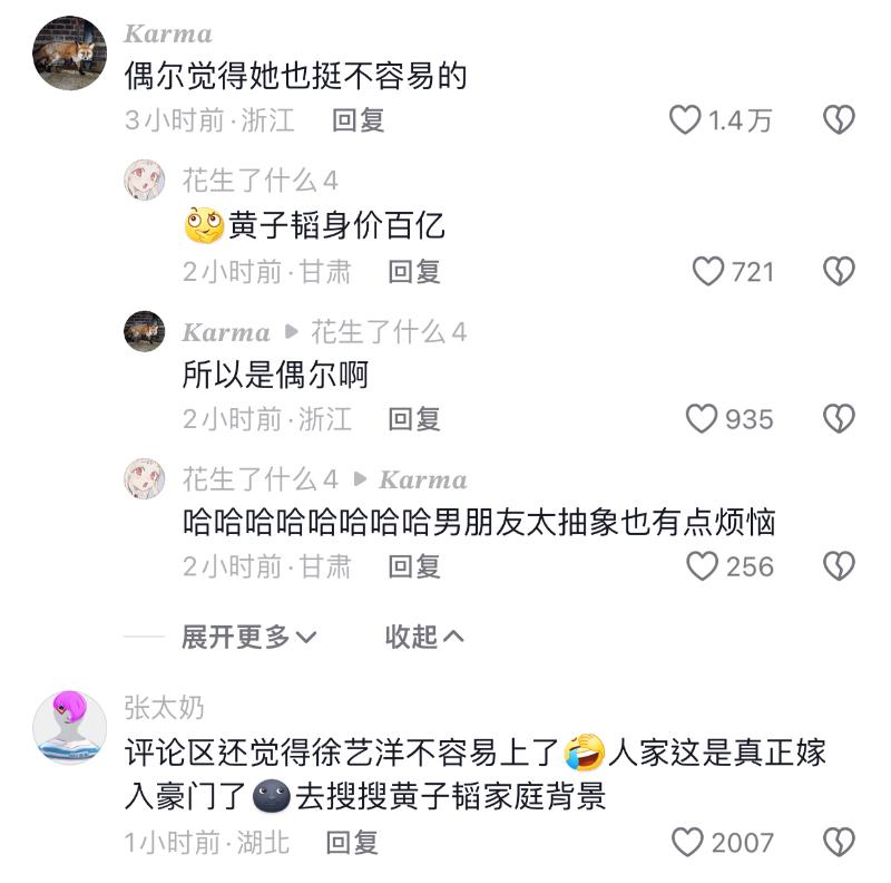 徐藝洋也忍不住回應:「??謝謝你!」而評論區都在喊讓她維權!