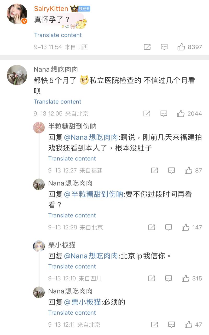 而在吳謹言官宣結婚帖下,有IP北京的網友信誓旦旦表示,女方已經懷孕五個月👇