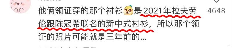 除了神留言和髮型、體態不一致之外,網友也扒出結婚證上的照片,穿的是3年前的陳冠希聯名款👇