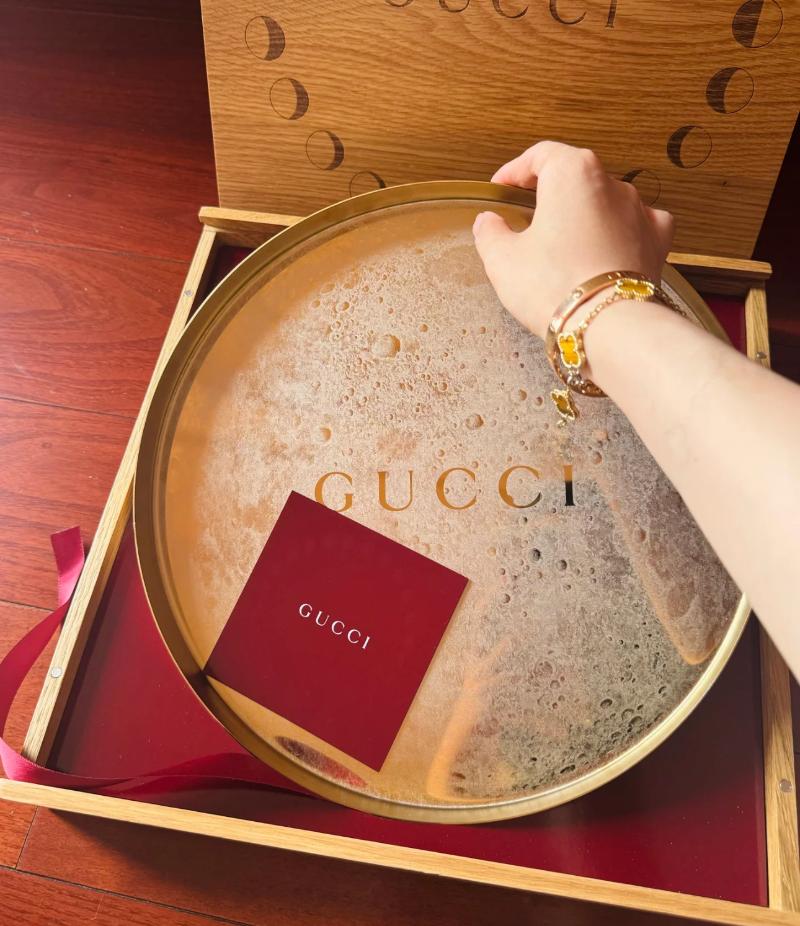 既然代言人都曬了,自然也要來看看品牌的月餅包裝啊!先來看看,肖戰代言的Gucci,今年是以月相為主題,木質盒蓋雕刻了月亮的陰晴圓缺,並附有仿照月球表面的碟👇
