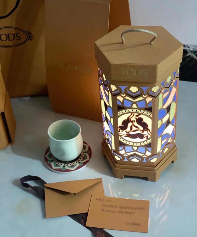 而Tod’s今年的月餅禮盒主題是「三兔共耳」,禮盒內外都繪有“三兔共耳”圖案,禮盒造型以宮燈為靈感,揭開燈罩,三層禮品逐一展現,分別有:中秋月餅、精致杯墊、手工瓷杯,真的很值得收藏!